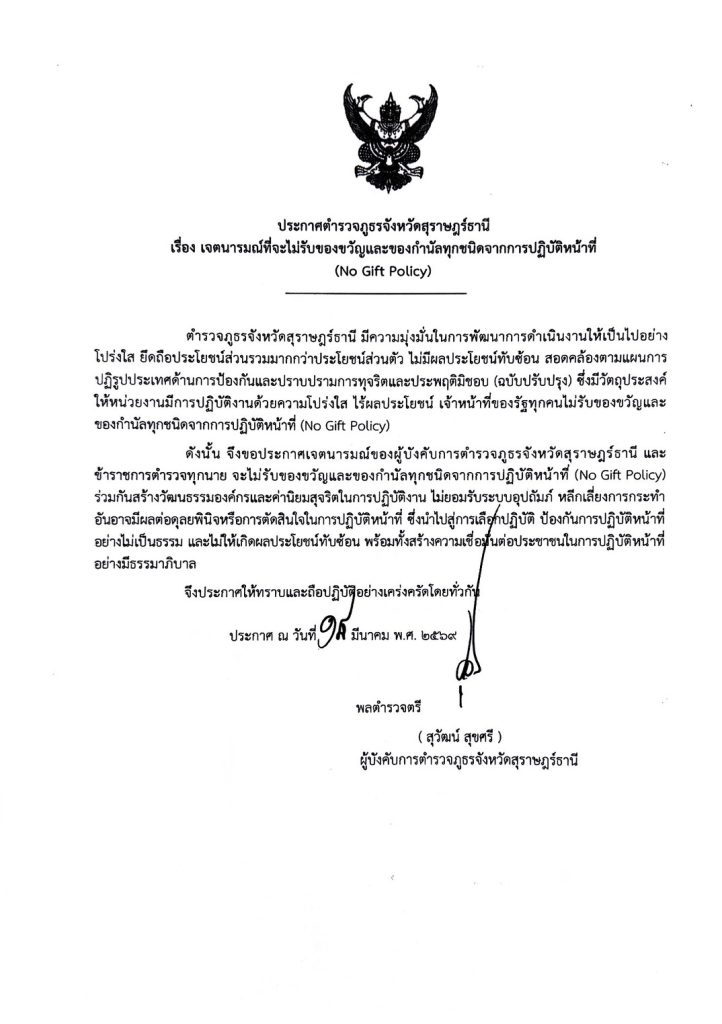 วันนี้ (15 ม.ค.69) เวลา 08.30 น. พล.ต.ต.สุวัฒน์ สุขศรี ผบก.ภ.จว.สุราษฎร์ธานี, พ.ต.อ.สมบัติ ฉ่