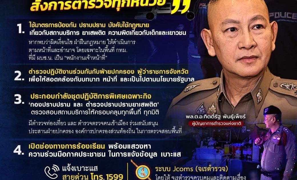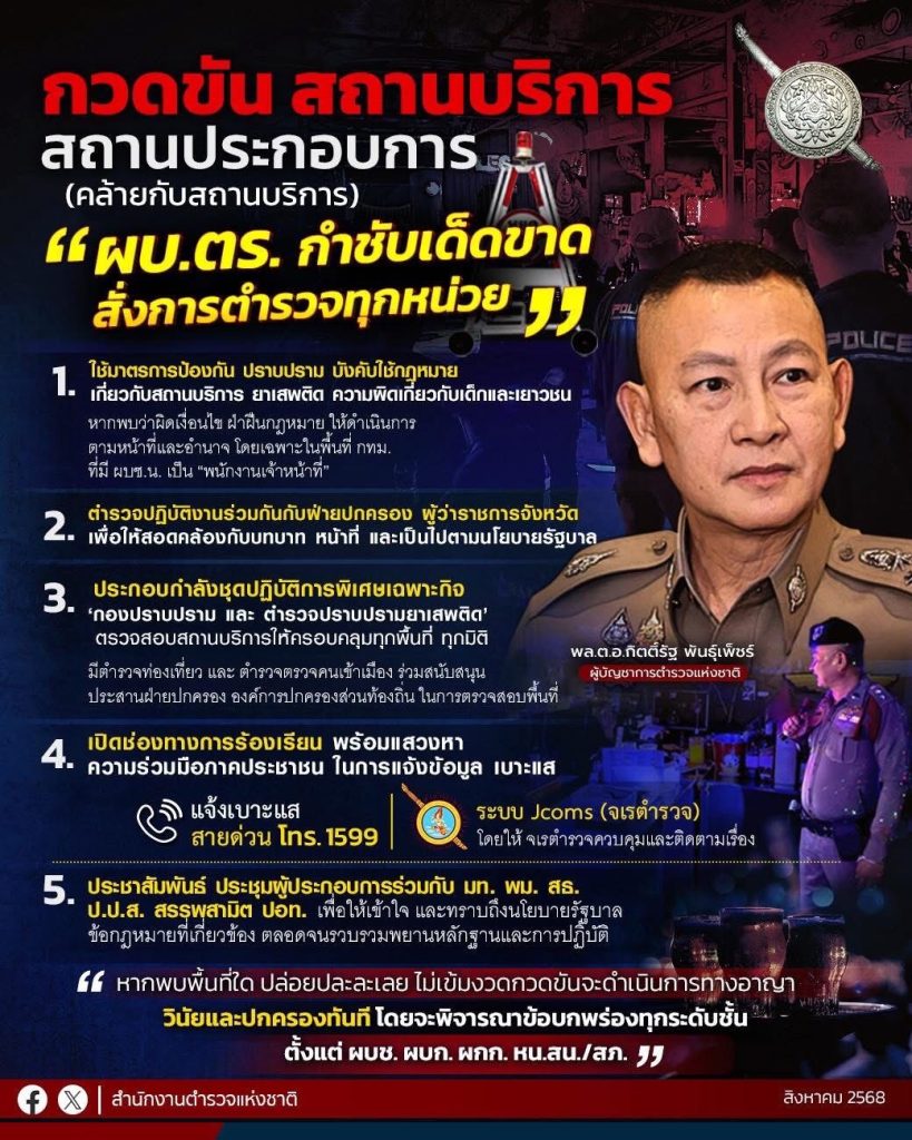 ผบ.ตร.กำชับเด็ดขาด สั่งการตำรวจทุกหน่วย กวดขันสถานบริการ สถานประกอบการ (คล้ายกับสถานบริการ)
